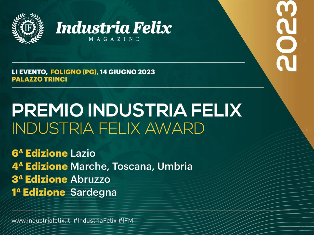 Le aziende premiate sono state in totale 74, 21 delle quali umbre. L’evento è stato organizzato da Industria Felix Magazine in collaborazione con Cerved, Università Luiss Guido Carli, Associazione culturale Industria Felix, con il sostegno di Confindustria, con il patrocinio di Simest (Gruppo Cassa Depositi e Prestiti), con la media partnership de Il Sole 24 Ore e Askanews, con le partnership di Banca Mediolanum, Mediolanum Private Banking, Grant Thornton, Plus Innovation, M&L Consulting Group.