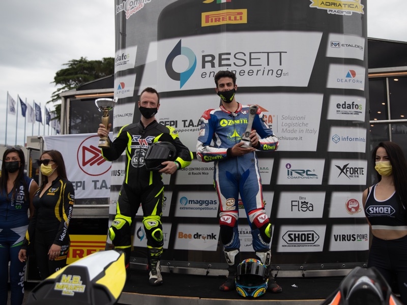 Vincenzo può quindi incrementare il proprio bottino (102 punti in classifica), sulla pista che è stata più di tutte il banco di prova per sviluppare la moto, recuperando sui pochi collaudi fatti in inverno, attraverso un accurato lavoro di sospensioni, che ha permesso al pilota di essere più veloce ad ogni turno in pista.
