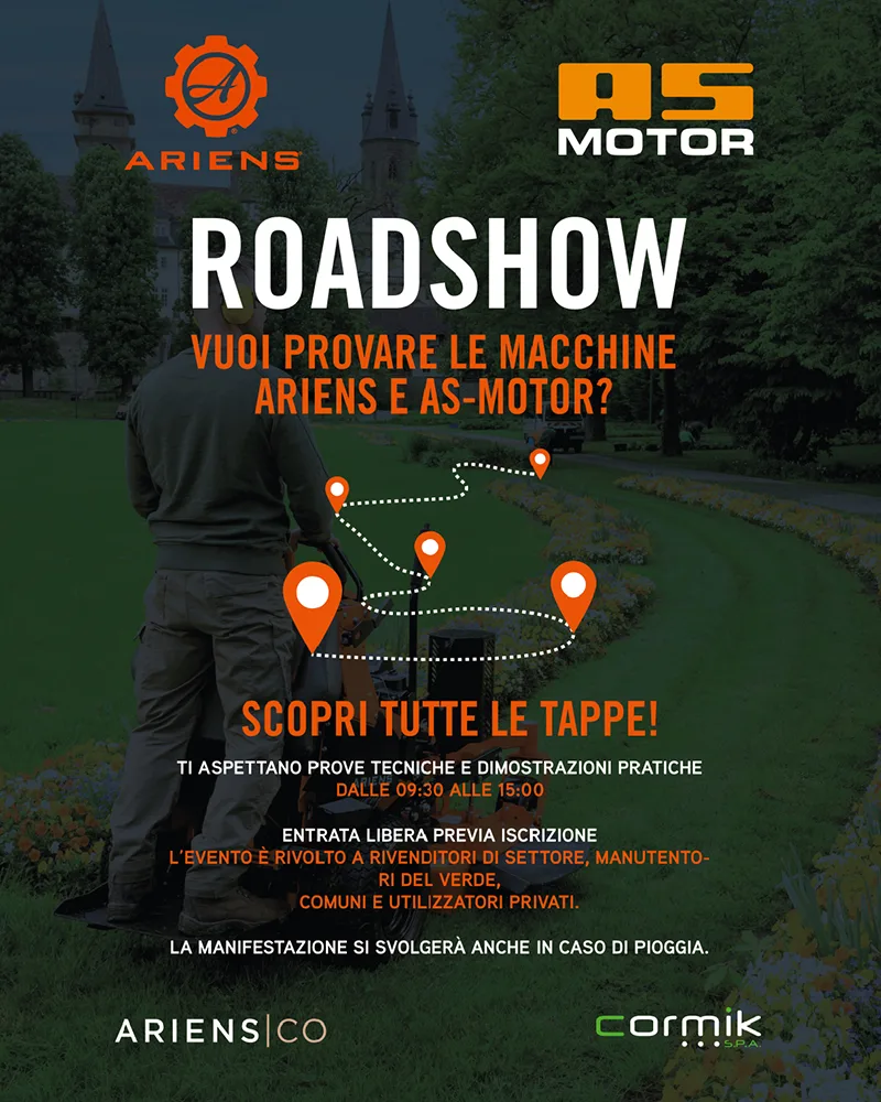 A Marzo, Cormik organizza la prima edizione dell’Ariens & As-Motor Road Show, un tour in 6 tappe tra il Nord e il Centro Italia pensato per far conoscere e testare sul campo soluzioni affidabili, potenti e progettate per chi ha bisogno di lavorare con precisione, velocità e sicurezza nei diversi contesti di manutenzione del verde.