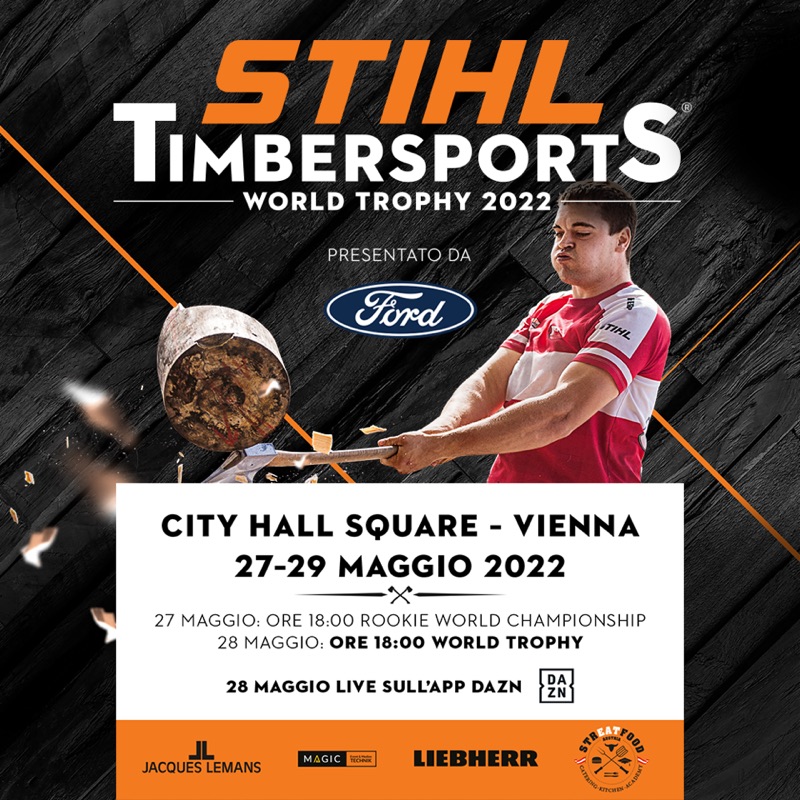 La stagione 2022 è alle porte: il prossimo 28 maggio alle ore 18.00 si terrà la prima competizione internazionale STIHL Timbersports, il World Trophy al Rathausplatz di Vienna, Austria.