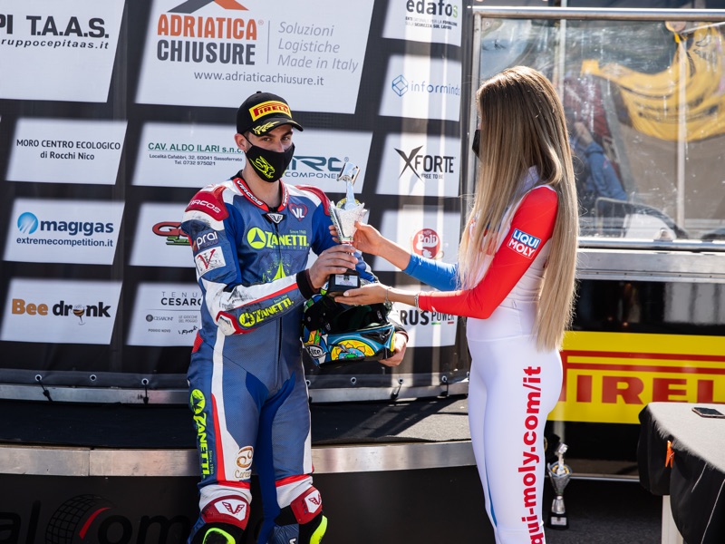 Dopo un sabato (8 maggio 2021) impegnativo e l’esordio stagionale nella gara di soli 7 giri, Vincenzo Lagonigro, pilota del Zanetti Racing Team, ha disputato un’ottima seconda manche, conquistando il 1° posto nella Coppa Pirelli Supersport.