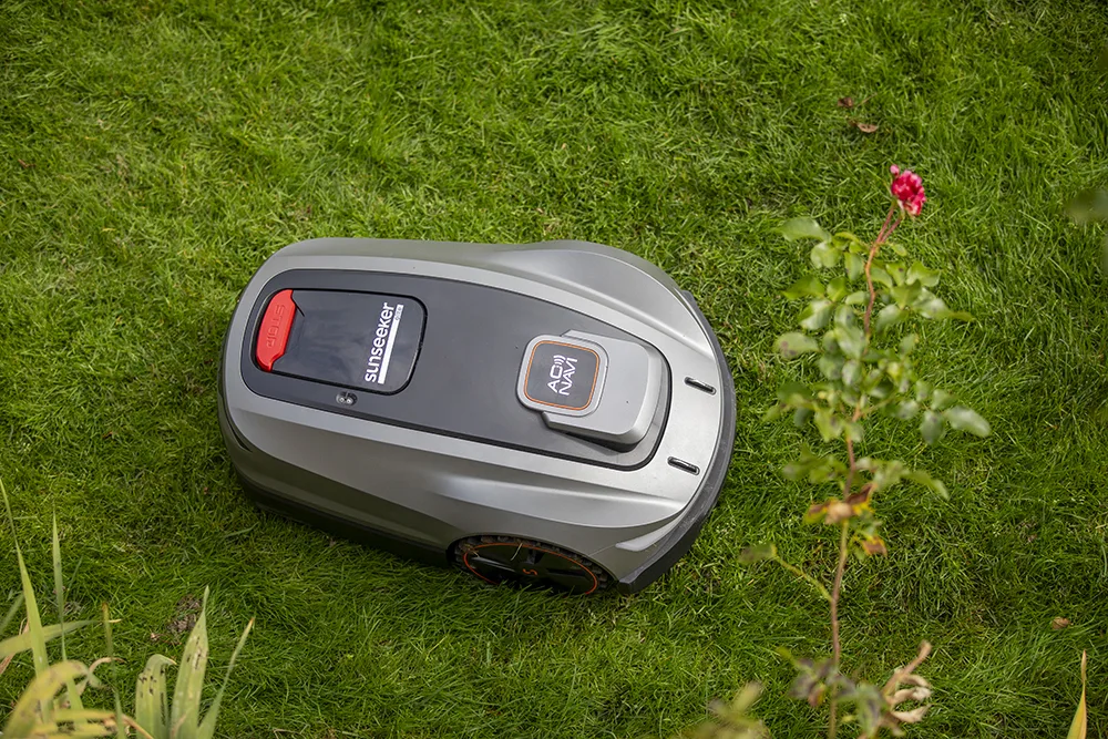 Quella posteriore ha due motori: uno garantisce l’avanzamento e l’arretramento, l’altro è il motore sterzante grazie al quale il robot può tagliare in maniera consequenziale in maniera molto più precisa”, spiega Michele Belladelli, responsabile commerciale Europa di Sunseeker, mentre il robot inizia ad incamminarsi sul giardino con passo sicuro.