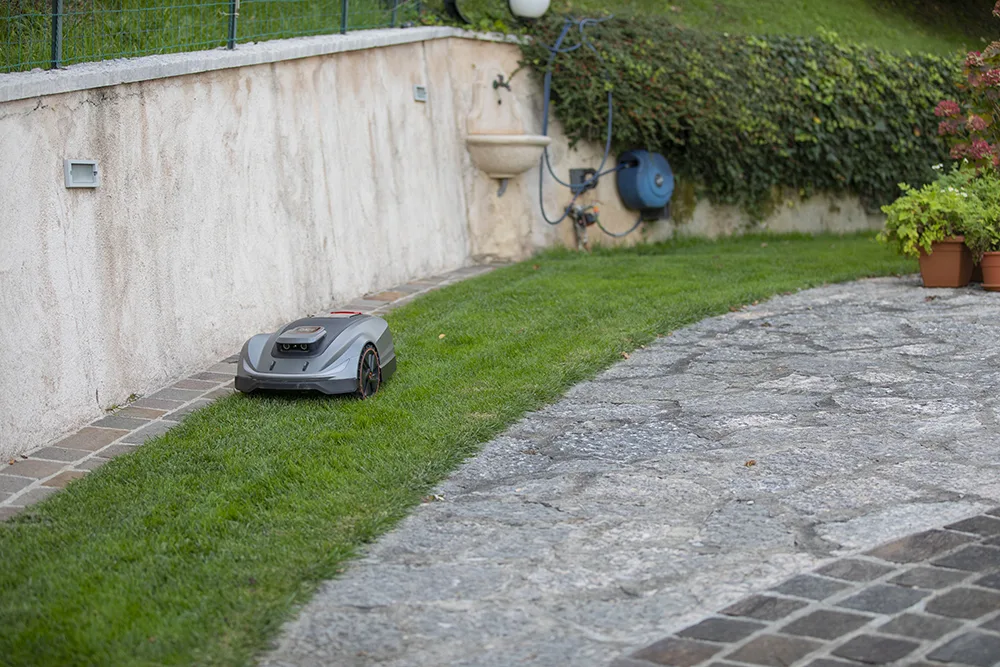 La differenza vera è proprio la ruota posteriore. “Un valore aggiunto – sottolinea Belladelliche abbiamo solo noi. I benefici sono infiniti. Su tutti quello di aver bisogno di sempre meno spazio rispetto ai nostri competitors per la gestione del giardino. In questo modo X5 Elite può muoversi anche negli spazi verdi più ardui, con poco spazio di manovra, riprendendo regolarmente il taglio predefinito proprio come era stato impostato. E la qualità di taglio è uniforme e davvero spettacolare. Grazie anche alla scheda madre, collegata con l’intelligenza artificiale”.