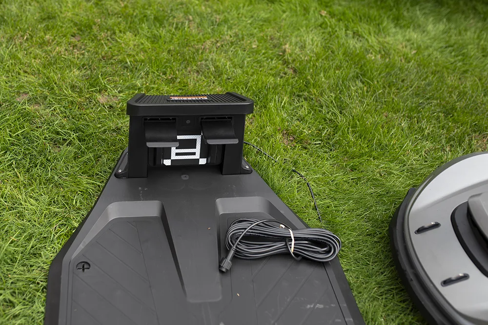 Nella parte inferiore dei sensori pioggia, con tanto di rientro immediato alla base di ricarica, ma soprattutto tre ruote motrici indipendenti che consentono alla macchina di adattarsi ad ogni condizione.