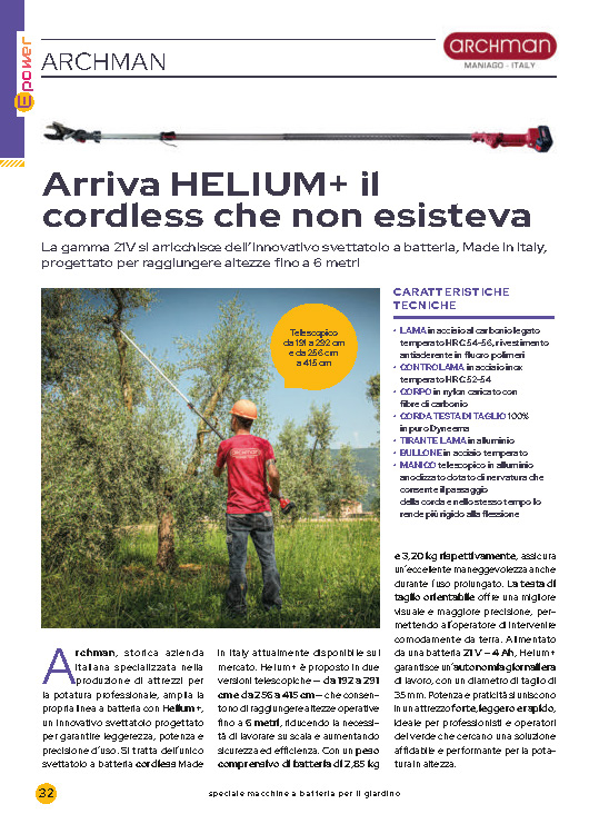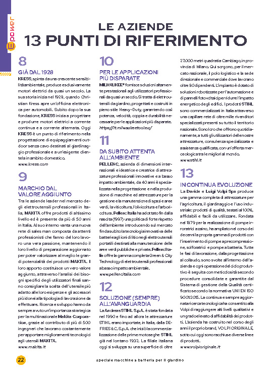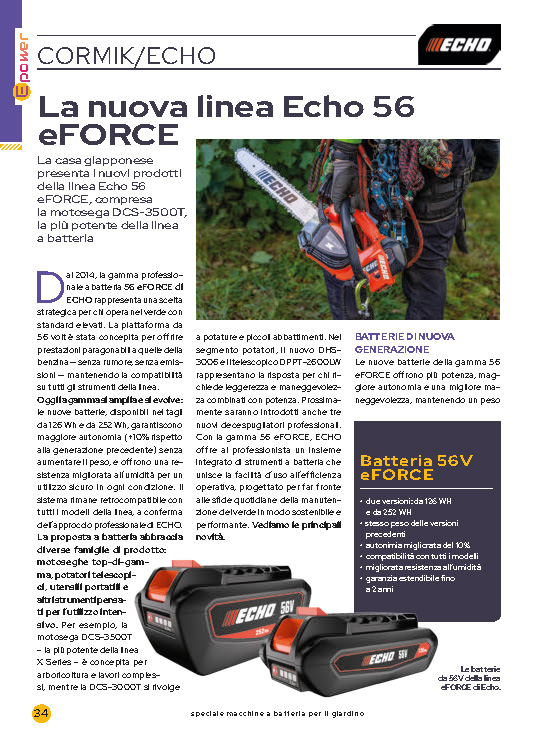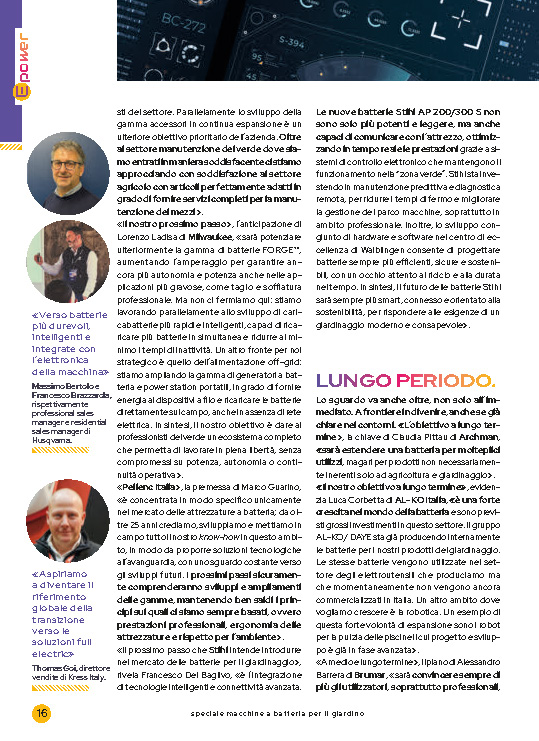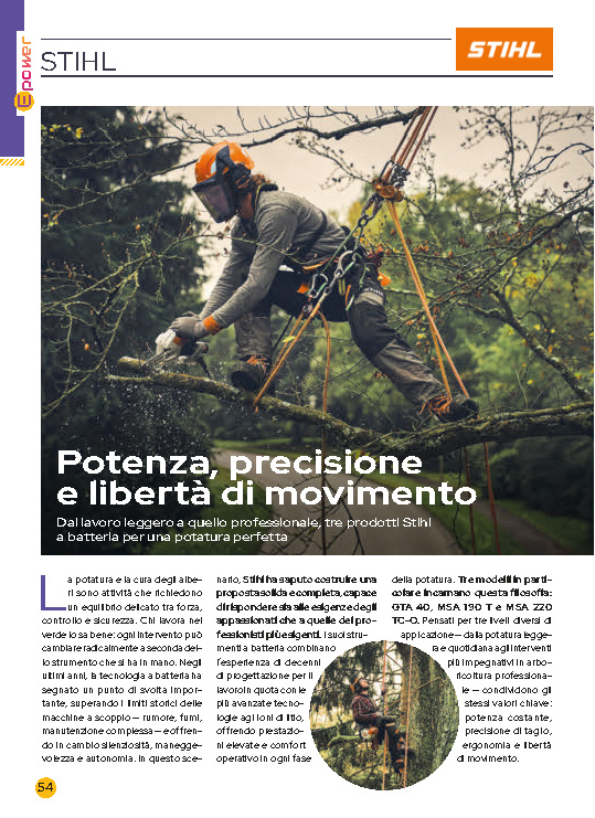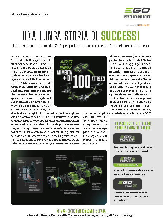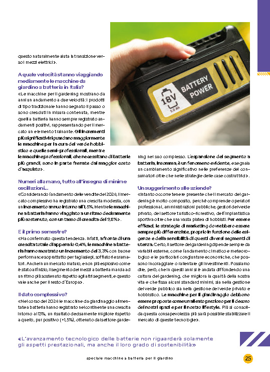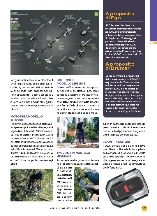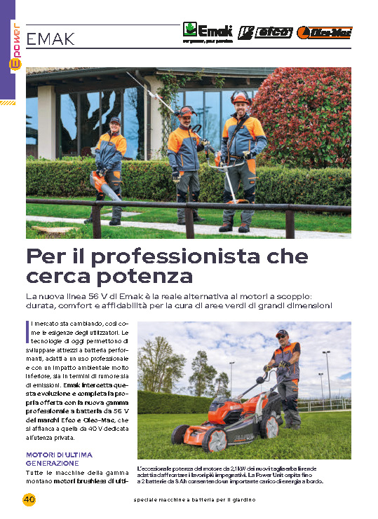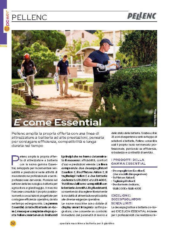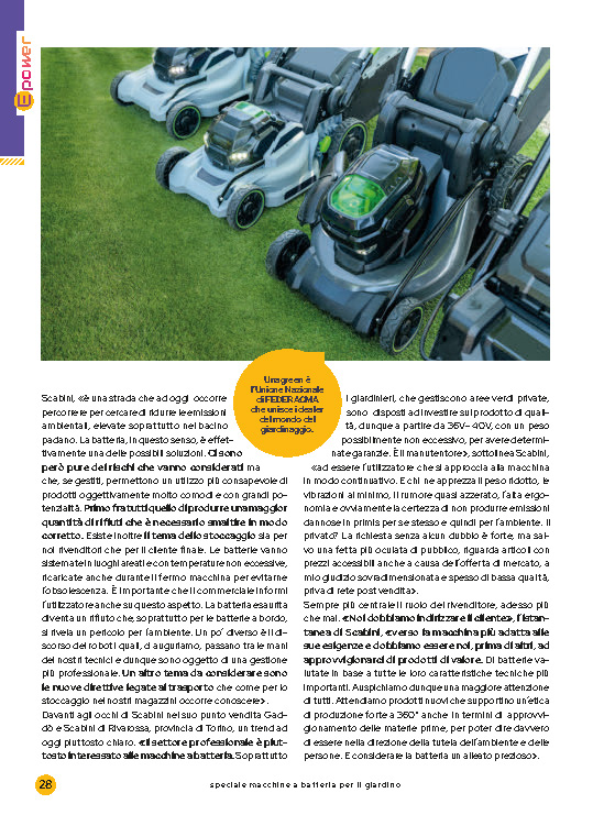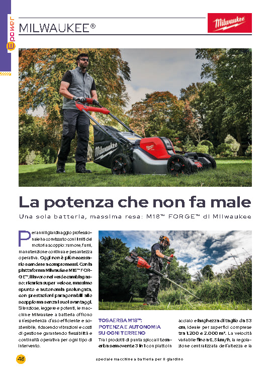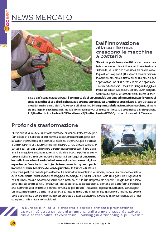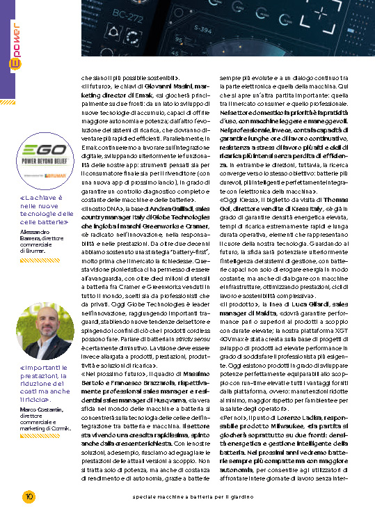 Torna E_Power,  speciale dedicato al mondo delle macchine a batteria per la cura del verde. Una seconda edizione ancora più ricca di contenuti, approfondimenti e testimonianze aziendali. Un’edizione che conferma la vivacità e la crescente importanza del settore delle macchine a batteria, oggi protagonista assoluto della trasformazione tecnologica nel comparto del giardinaggio, sia professionale sia hobbistico.