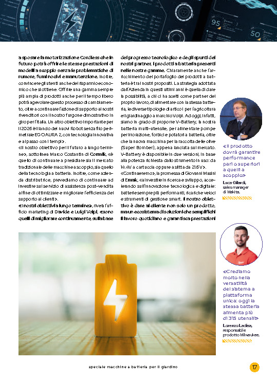 Oggi, parlare di batteria non significa più pensare a un segmento secondario, ma a un punto centrale della transizione energetica applicata al giardinaggio e alla manutenzione del paesaggio. Le aziende del settore stanno investendo massicciamente in ricerca e sviluppo, per garantire prestazioni sempre più elevate, autonomia, sicurezza e ridotto impatto ambientale.