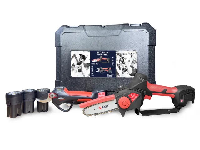 La soluzione completa per ogni potatura: il kit forbice, potatore e 3 batterie incluse. Il kit ideale per chi vuole potenza, precisione e versatilità in un’unica soluzione.