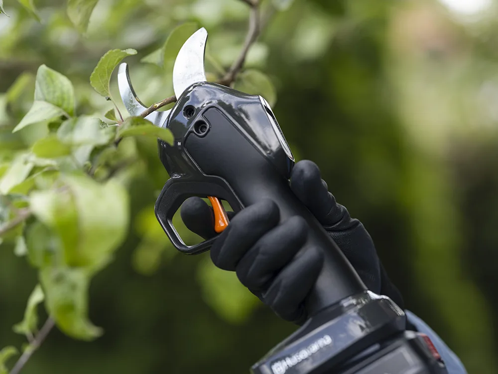La forbice Husqvarna Aspire PS30X a batteria è compatta, ma dalle prestazioni elevate, con una capacità di taglio dei rami fino a 30 mm.