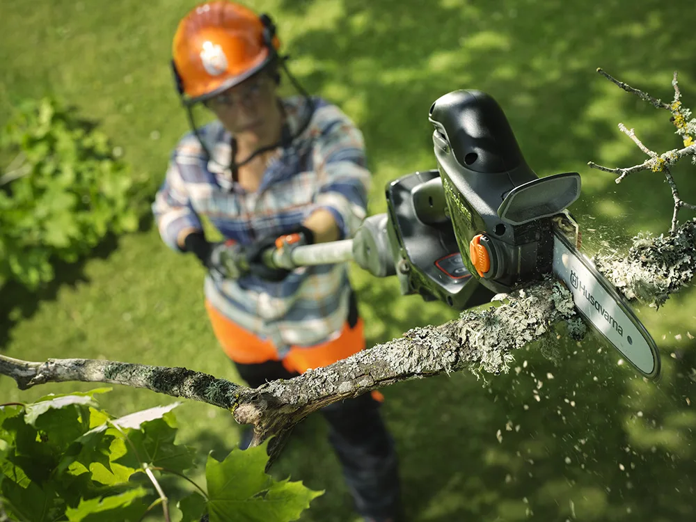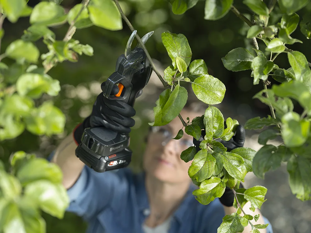 Il potatore a batteria Husqvarna Aspire P8X è progettato per tagliare con facilità i rami del giardino grazie alla sua capacità di taglio fino a 120 mm.