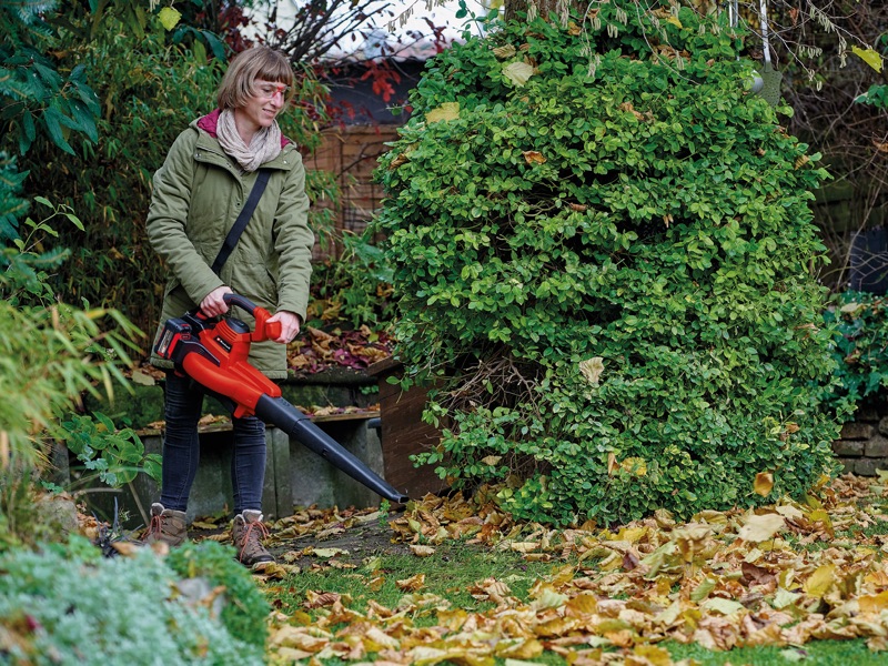 La conversione da un ampio tubo di aspirazione a un tubo a soffietto stretto – entrambi forniti con il prodotto – non richiede strumenti. C’è un interruttore turbo integrato per la massima potenza di soffiaggio, controllo elettronico della velocità e un’apertura di pulizia con interruttore di sicurezza.