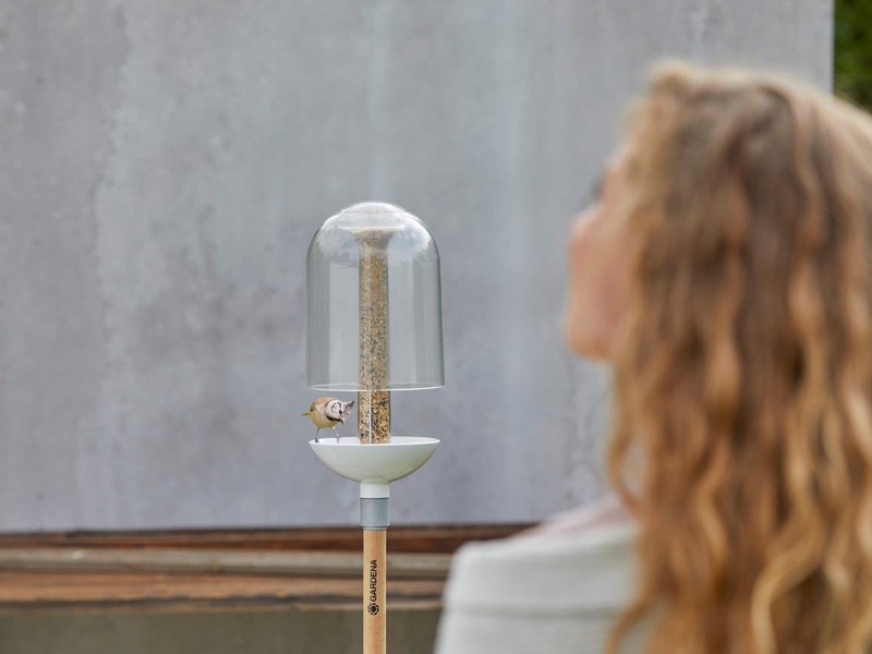 Da posizionare in giardino, la Mangiatoia conserva al suo interno il mangime e lo protegge dalla pioggia e dalla neve.  Il mangime può essere facilmente inserito e integrato man mano che viene consumato. Il materiale con cui è stata costruita (plexiglass trasparente) la rende resistente al gelo e lavabile in lavastoviglie. Grazie al suo design, la Mangiatoia per uccelli ClickUp! oltre ad essere di ausilio agli uccelli, valorizza il giardino.