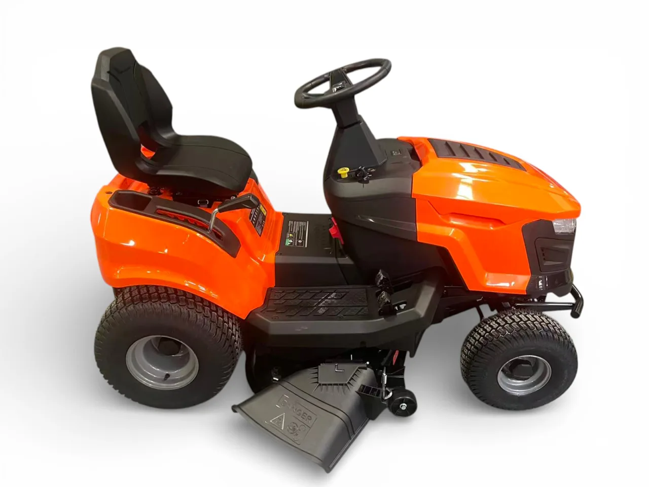 Pensato anch’esso per superfici fino a 15.000 mq, questo trattorino condivide la stessa base tecnica del modello con raccolta, distinguendosi per la configurazione a scarico laterale. Una soluzione che privilegia la rapidità di esecuzione e la gestione di erba più alta o meno frequente.