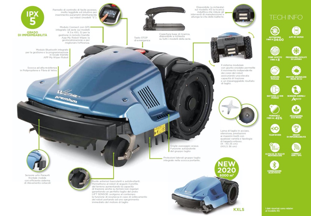 I robot rasaerba Wiper della Serie K di Niko rappresentano una nuova generazione di robot costruita su un telaio modulare di nuovissima concezione.